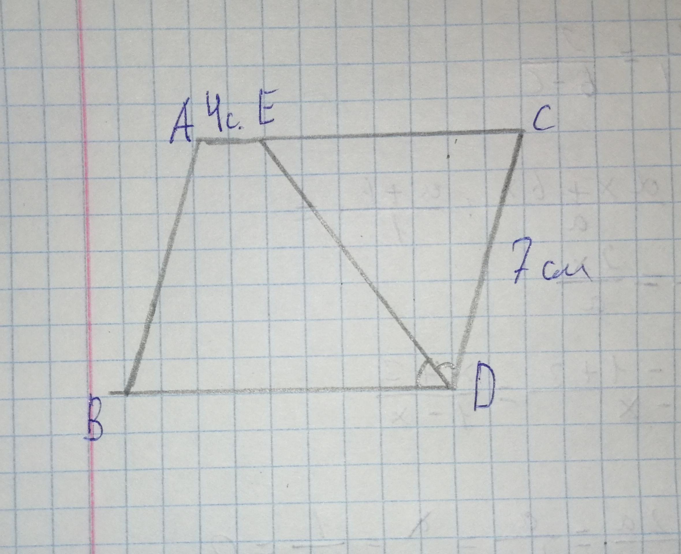 ABCD - параллелограмм ⇒ AC ║ BD ( по свойствам параллелограмма); ED - секущая ( при AC ║ BD ) ⇒ ∠EDB = ∠CED ( накрест лежащие углы, при секущей ED и AC ║ BD); ∠EDB = ∠CDE ⇒ ∠CDE = ∠CED ⇒ ΔCDE - равнобедренный ⇒ EC = CD = 7 см.