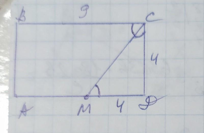 Если СМ - биссектриса, то <ВСМ=<ДСМ=45°, поскольку у прямоугльника каждый угол по 90°, поэтому 90÷2=45°. СМ является секущей при параллельных ВС и АД поэтому <ВСМ=<СМД, как внутренние разносторонние поэтому: