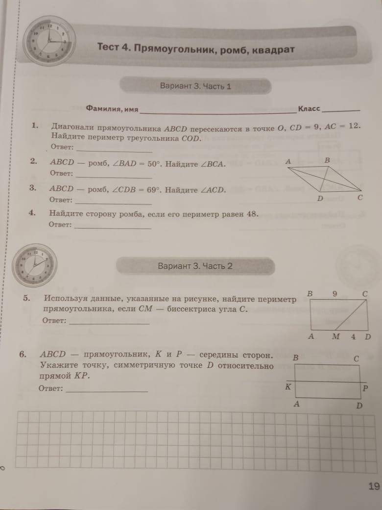 <ВСМ=<ДСМ=<СМД=45°. Рассмотрим ∆СДМ, он равнобедренный поскольку <СМД=ДСМ, тогда СД=МД=4. Следовательно АВ=СД=4. Теперь найдём периметр прямоугольника зная его стороны: