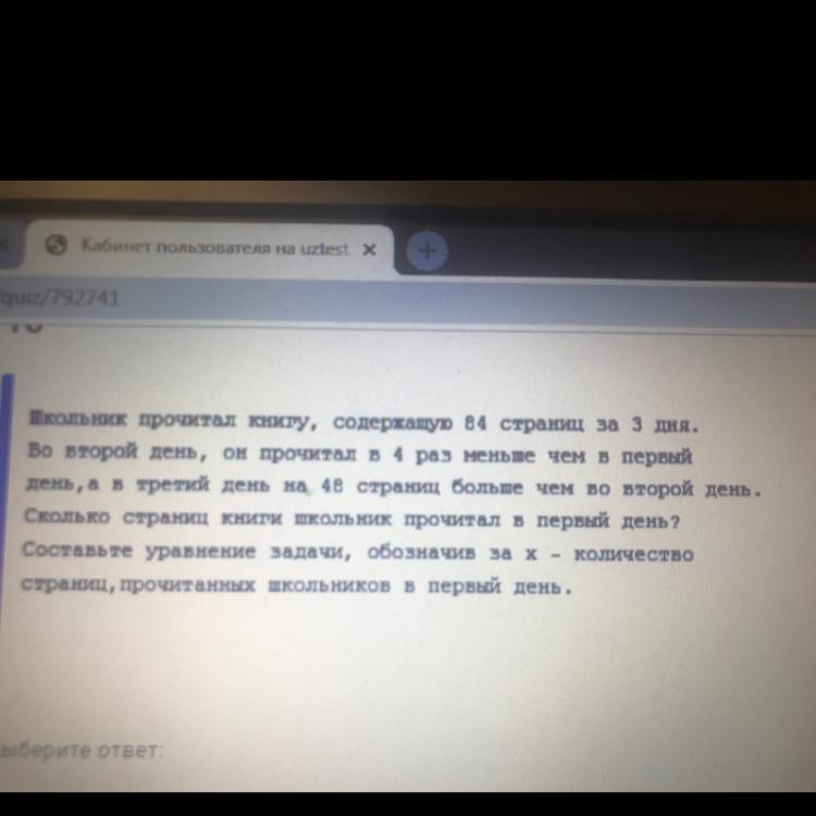 x +  \frac{x}{4 }  +  \frac{x}{4}  + 48 = 84 \\ x +  \frac{x}{2}  = 36 \\  \frac{2x}{2}  +  \frac{x}{2}  = 36 \\  \frac{3x}{2}  = 36 \\ 3x = 72 \\ x = 24 \\ 24 pervyi \: den \\ 6vtoroi \: den \\ 54tretii \: den