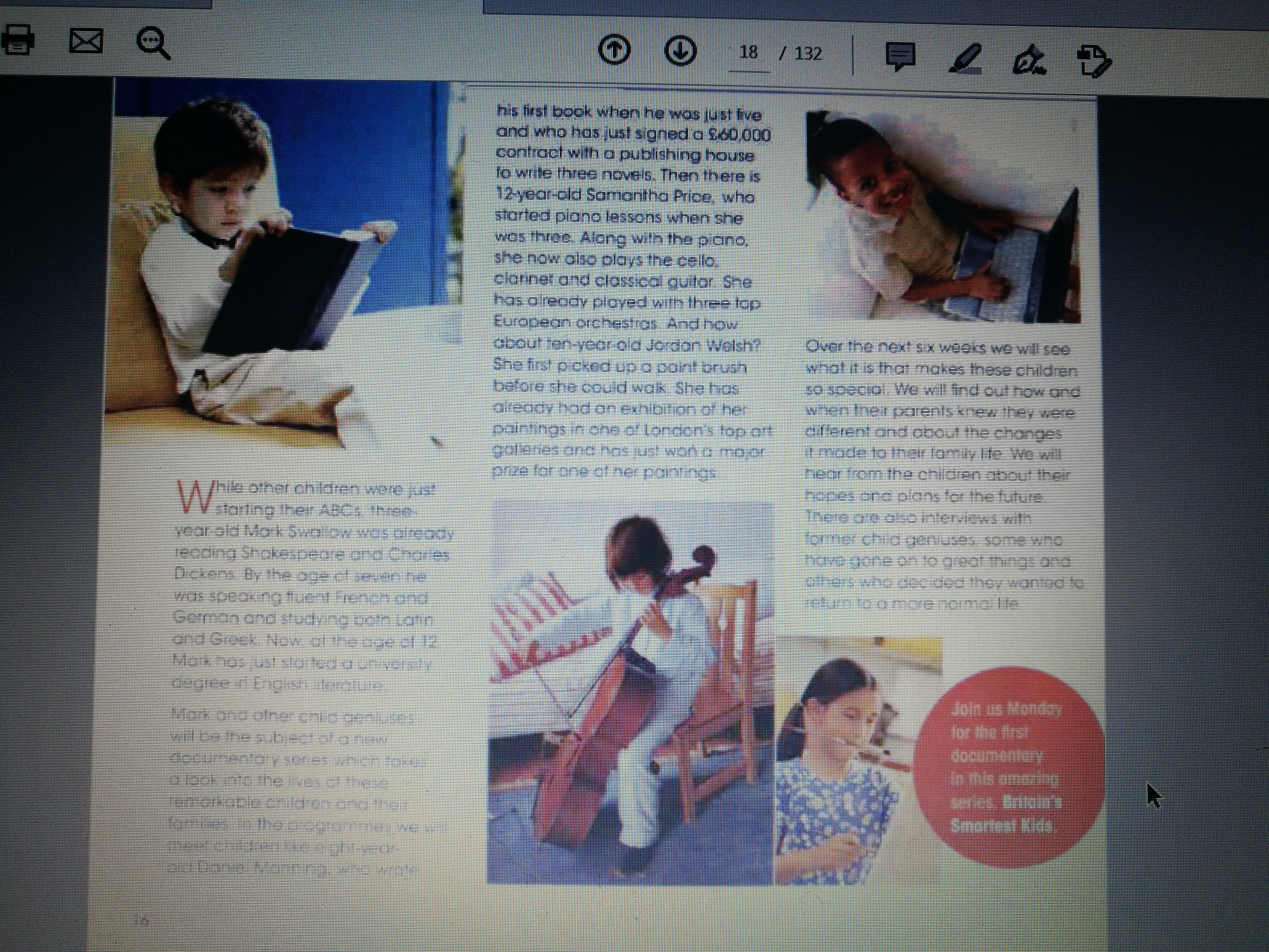 Mark Swallow is very smart. He was able to read Shakespeare and Charles Dickens when he was three years old. At the age of seven Mark was speaking French and German. When he became 12, he started a university degree in English literature.