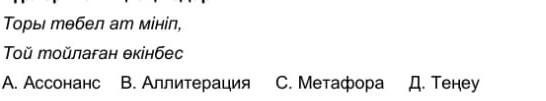 А. Ассонанс В. Аллитерация С. Метафора Д. Теңеу