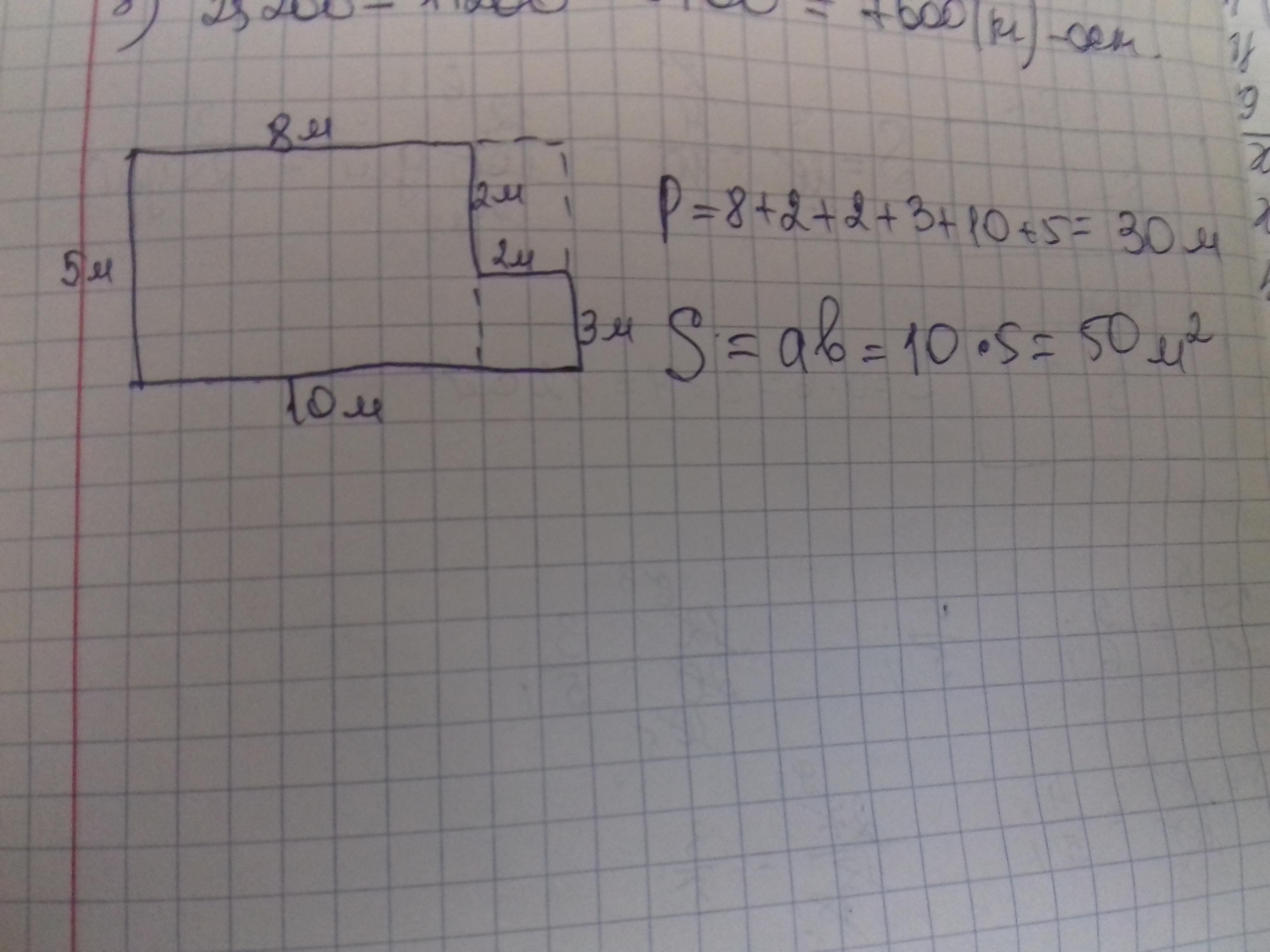 Р=2(10+2+3)=30;  S=5*10-2*(10-8)=50-4=46