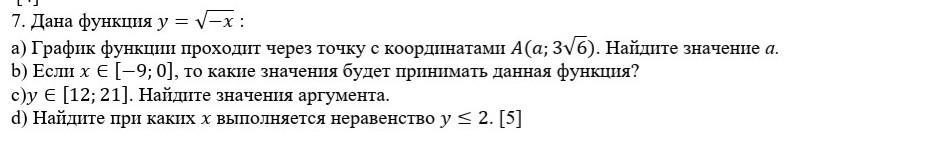 d) 2 = √-x => x = -4. чтобы y≤2, нужно чтобы √-x ≤2 то есть x -4
