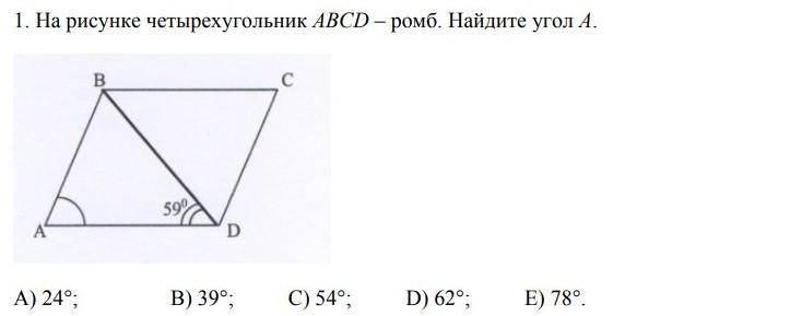 У ромба диагонали делят углы на равные ∠BDC=∠BDA=59°;