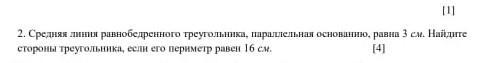 средняя линия равнобедреного треугольника паралельная оснаванию равна 3 см. найдите стороны треугольника если его перимерт равен 16 см хелп пж ответьте