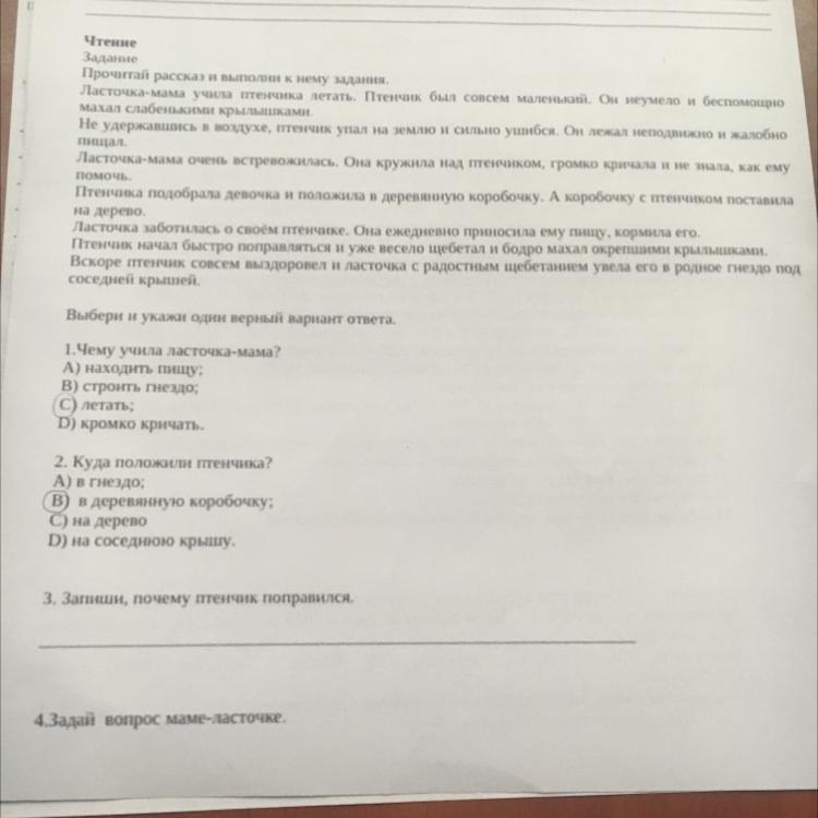 Потому что ласточка ежедневно заботились о своём птенчике. Ежедневно приносила ему еду, кормила его. Из-за заботы ласточки птенчик быстрее поправился.