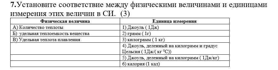 Установите соответствие между физическими величинами и единицами измерения этих величин в СИ