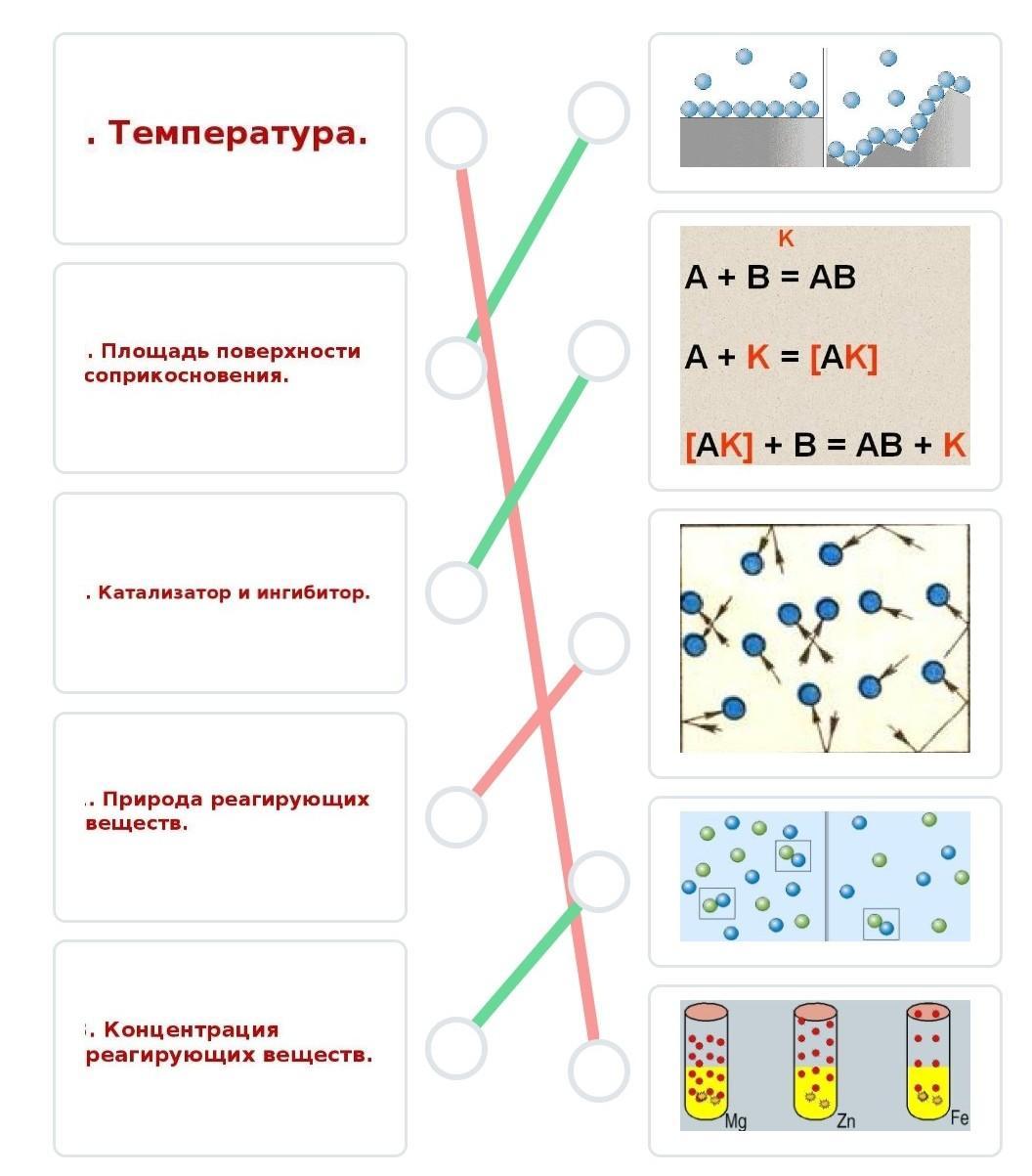 Установите соответствие между факторами, влияющими на скорость химической реакции и процессами происходящими в реакциях, при применении этих факторов.