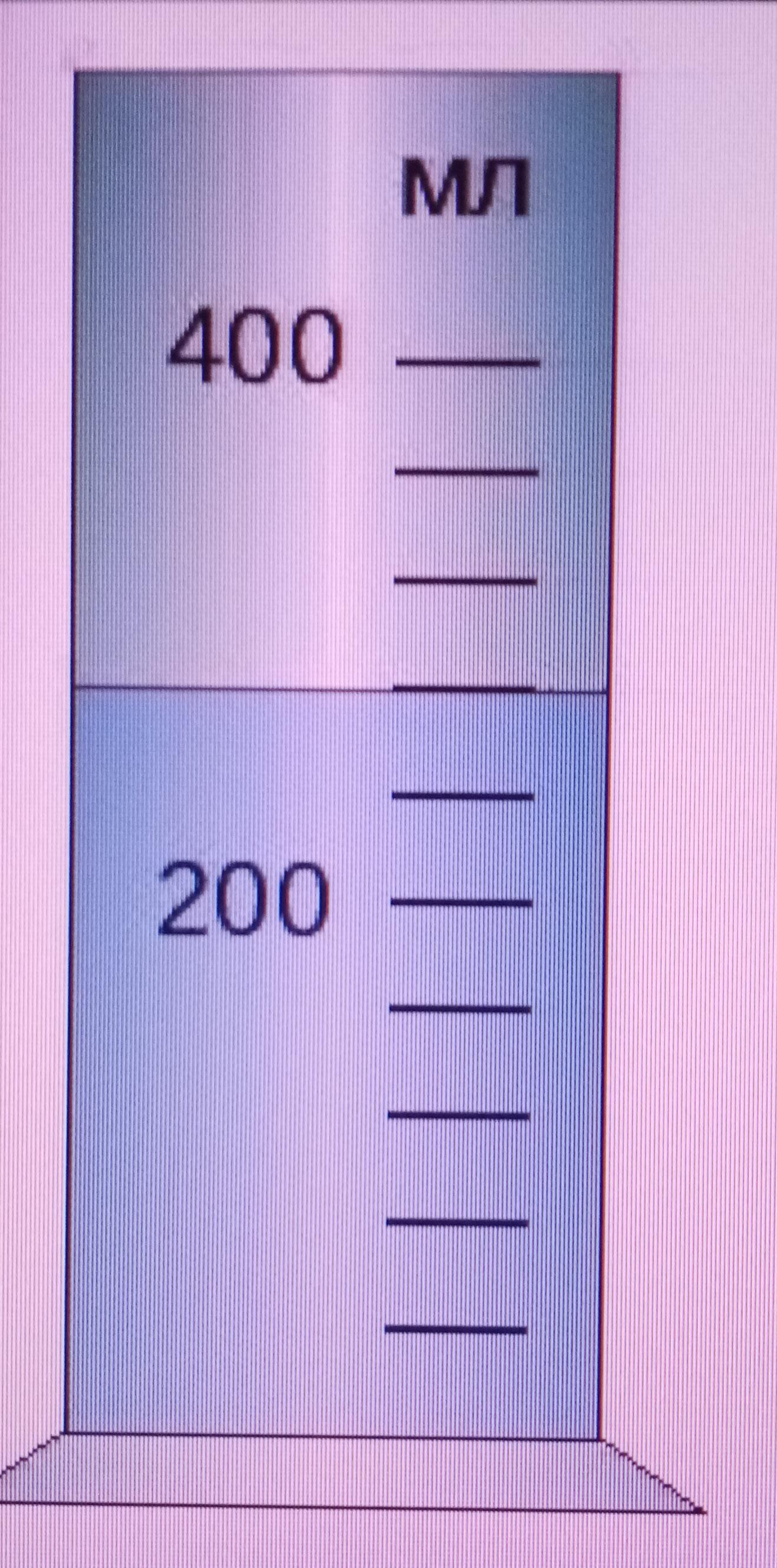 1) цена деления: (400мл - 200мл) / 5 = 40 мл.