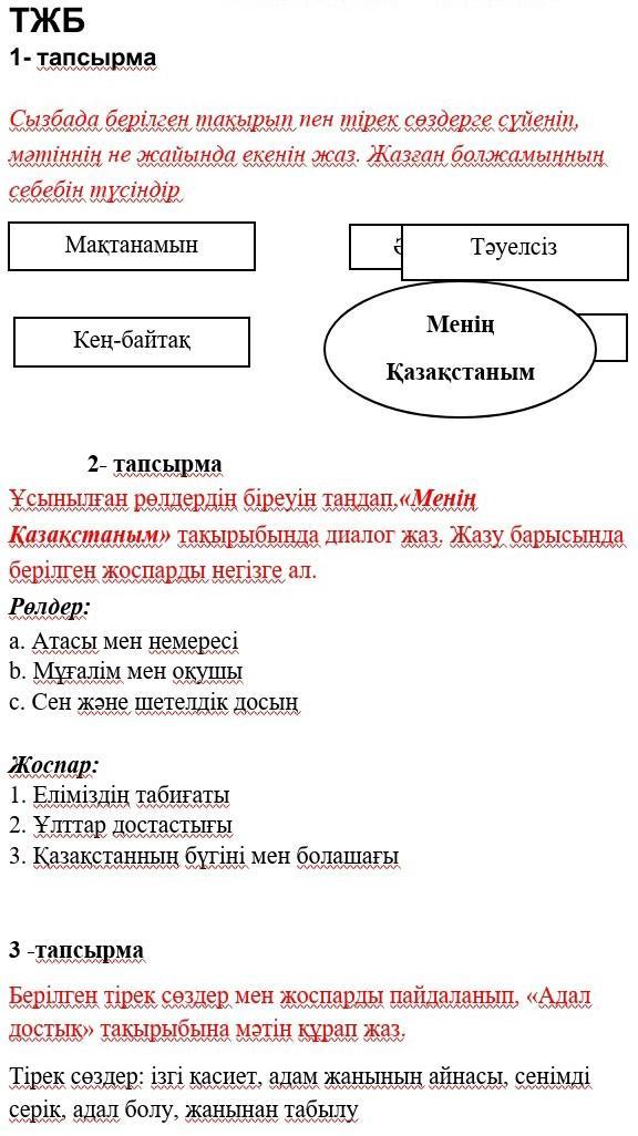 я тебе до 2 упр написала,только про [қазақстанның бүгіні және болашағы]я не писала.Удачи тебе.Думаю ты поймешь мой почерк