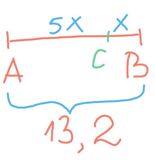 4. На отрезке AB, равном 13,2 см отметили точку Стак, что отрезок АСв пять раз больше отрезка