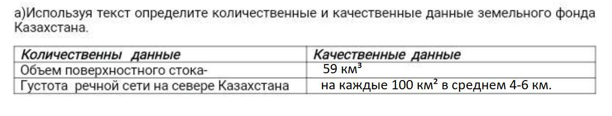 а)Используя текст определите количественные и качественные данные земельного фонда Казахстана.