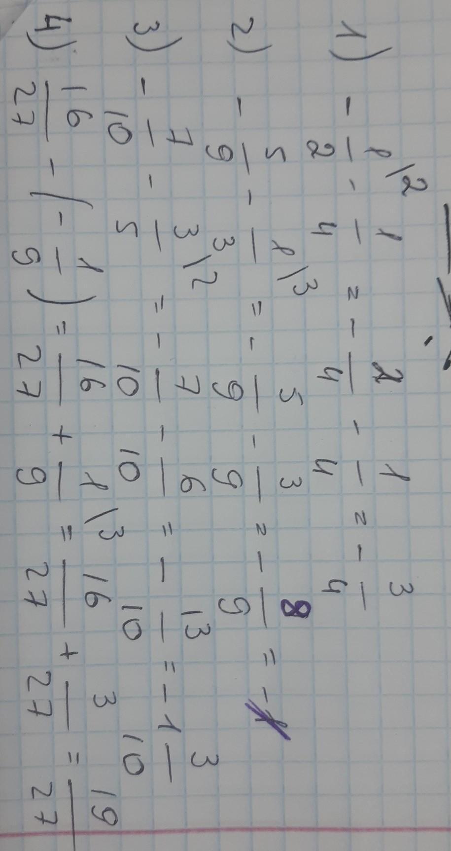 4)16/27-(-1/9)=16/27+1/9=16/27+3/27=19/27