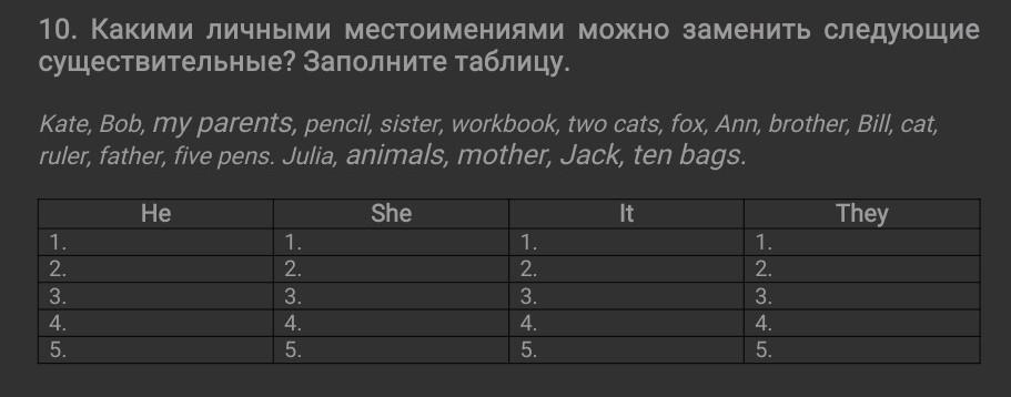 там просто нужно расставить замена местоимений например схе это это она хе это он и так далее