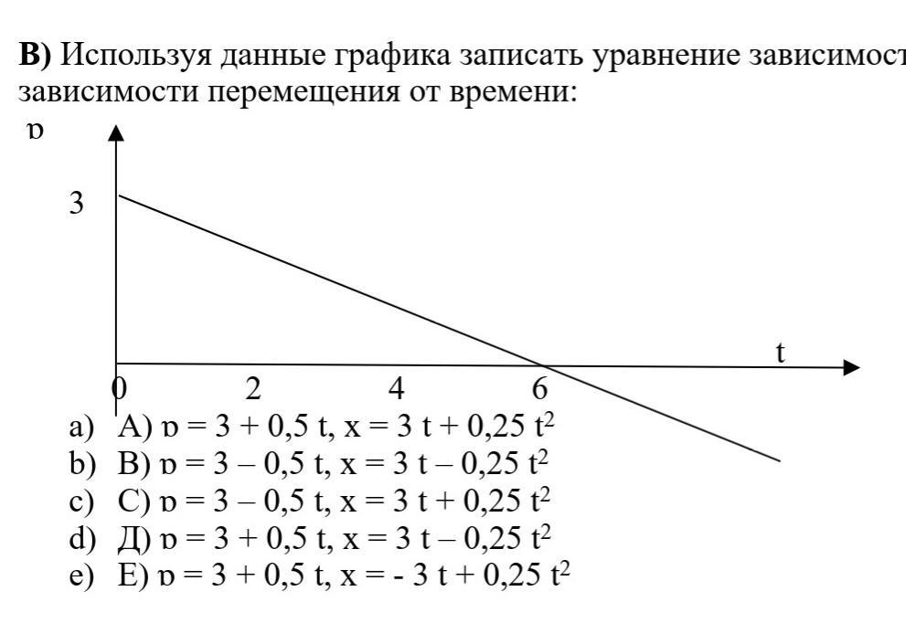 a) А) ɒ = 3 + 0,5 t, х = 3 t + 0,25 t2