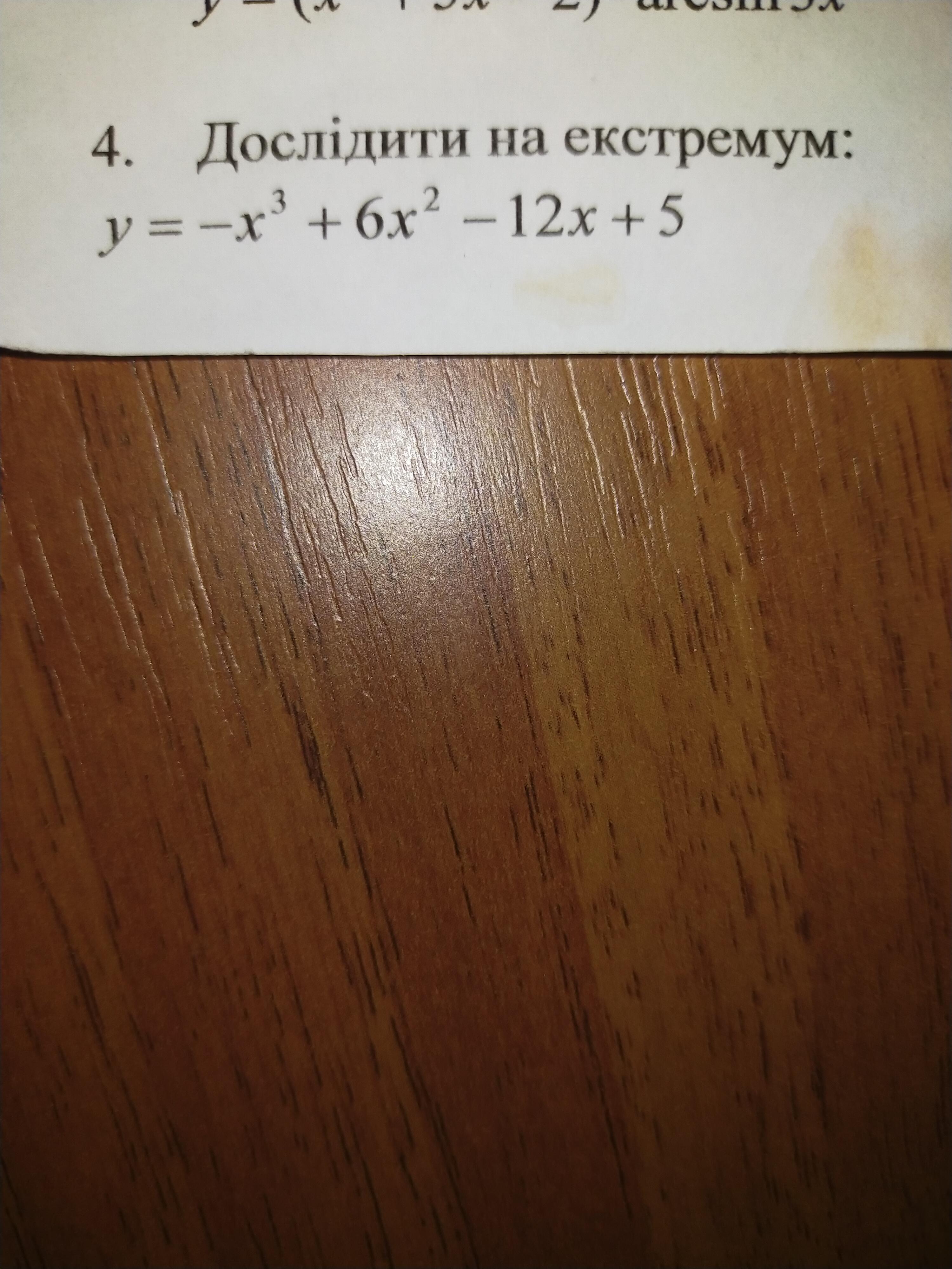производная y'=0=-3x²+12x-12, x²-4x+4=0, D=0, x1,2= 2 -критическая точка , при переходе х<2 и х>2 знак производной не меняется, значит это точка перегиба, а поскольку область определения не задана, то экстремумов не существует, функция монотонно убывающая