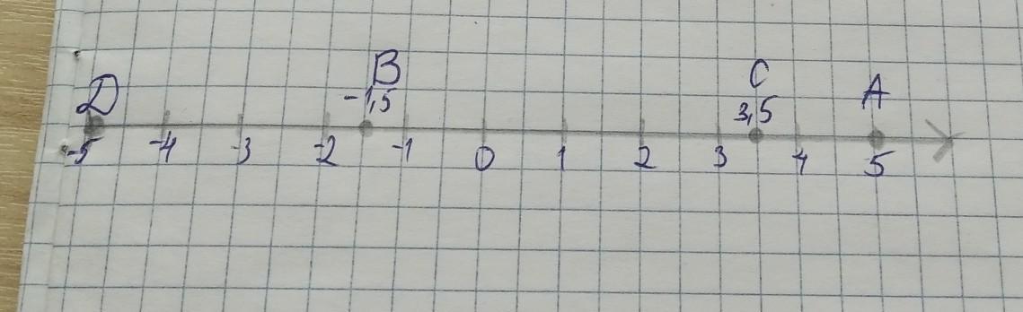 а)на координатной прямой отметьте точки А5, В(-1,5), С(3,5), Д(-5) б) Укажите точки с противоположными координатами помогите срочно дам 19 баллов