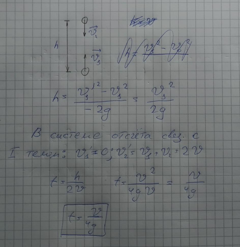 Тіло кинули вертикально вгору зі швидкістю 4,9 м/с. Одночасно з найбільшої висоти, яку він може досягти, кинули вертикально вниз інше тіло з такою самою швидкістю. Визначити час, через який тіла зустрінуться.