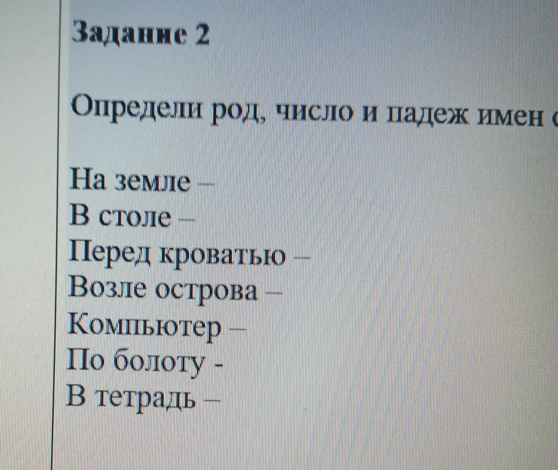 Задание: Опредили род,число и падеж имён существительных. Пожалуйста помогите срочно