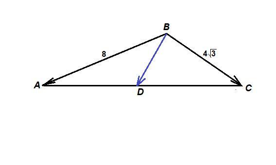 Дан треугольник ABC. Известно, что AB = 8, BC = 4 корень 3