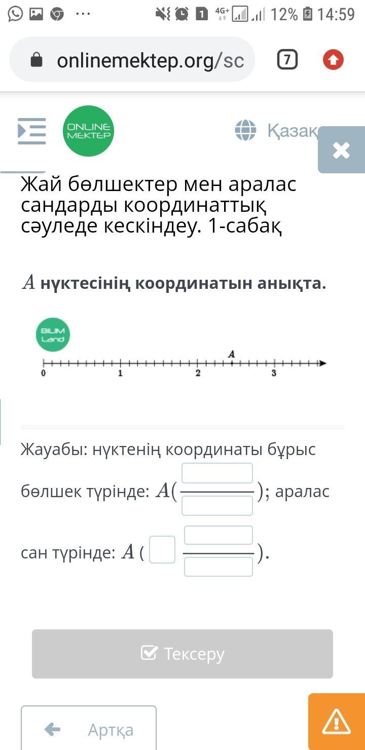 Определите координаты точки. Ответ: Координаты точки указаны в неправильной дроби: в виде смешанного числа: A (