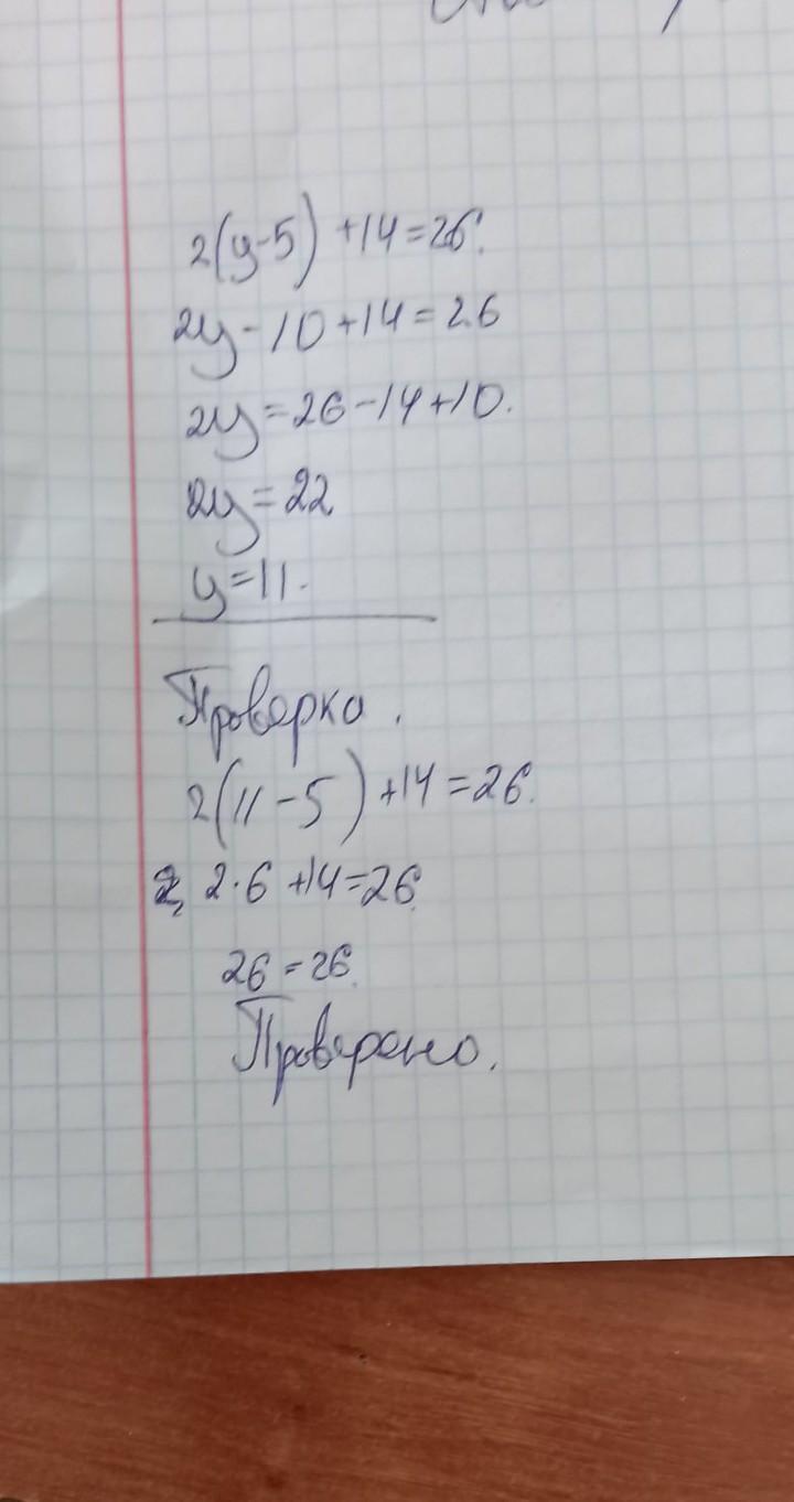 2(у-5)+14=26 2у-10+14=26 2у=2 у=1