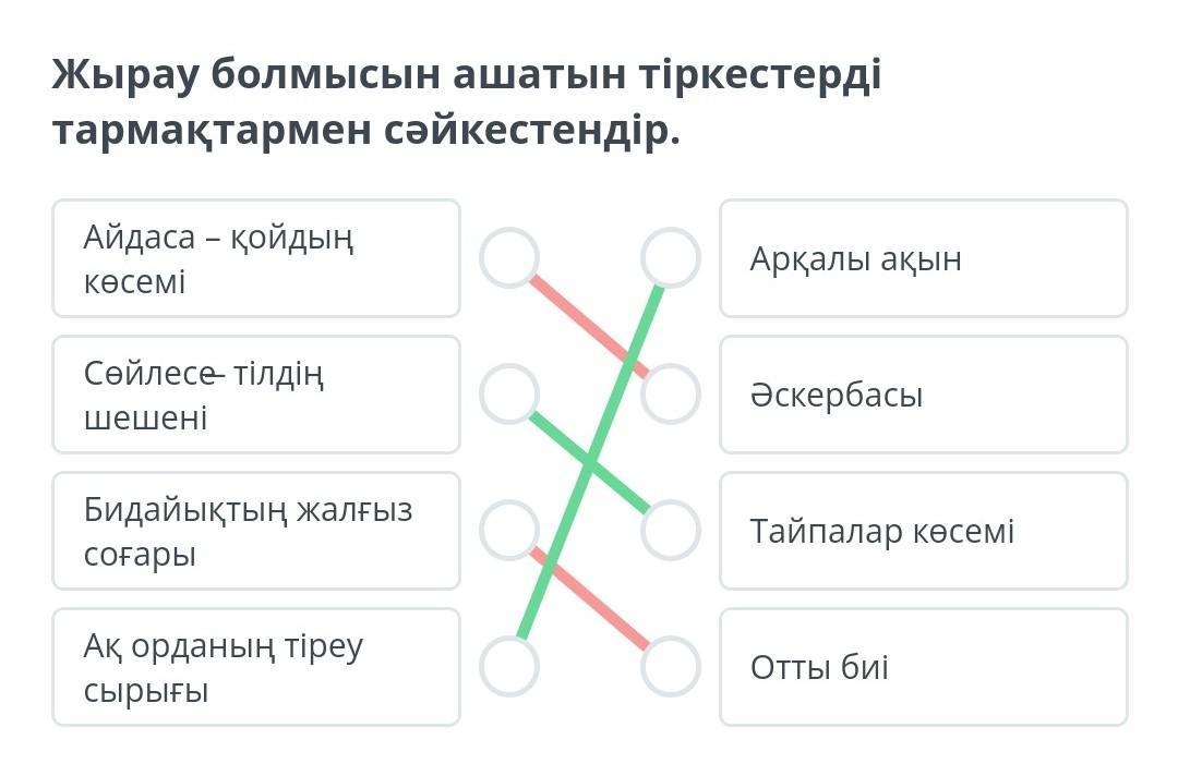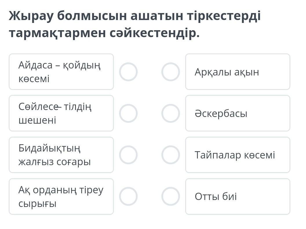 Жырау болмысын ашатын тіркестерді тармақтармен сәйкестендір.