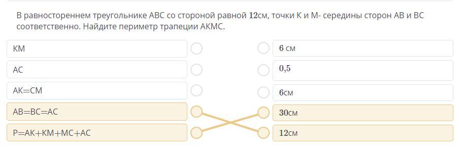 АК = СМ = 6 см (так как это серединки равных сторон треугольника).