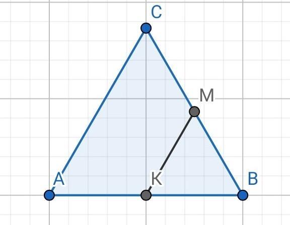 Так как точки К и М - середины сторон АВ и ВС соответственно, то КМ - средняя линия треугольника (по определению).
