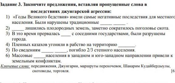 закончите предложения Вставляя пропущенные слова в последствиях джунгарской агрессии