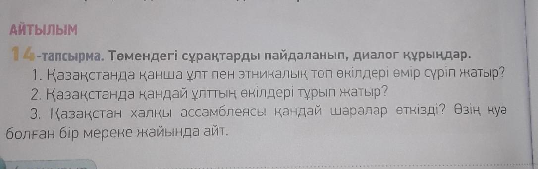 3)Казахстанда Наурыз мейрамы,Откызыледы мен озымнын ауылымда коргенмын ол мейрам эте керемет екен онда :наурыз коже бауырсактар оте коп ,Жане балалармен алтыбаканмен коныл котердык