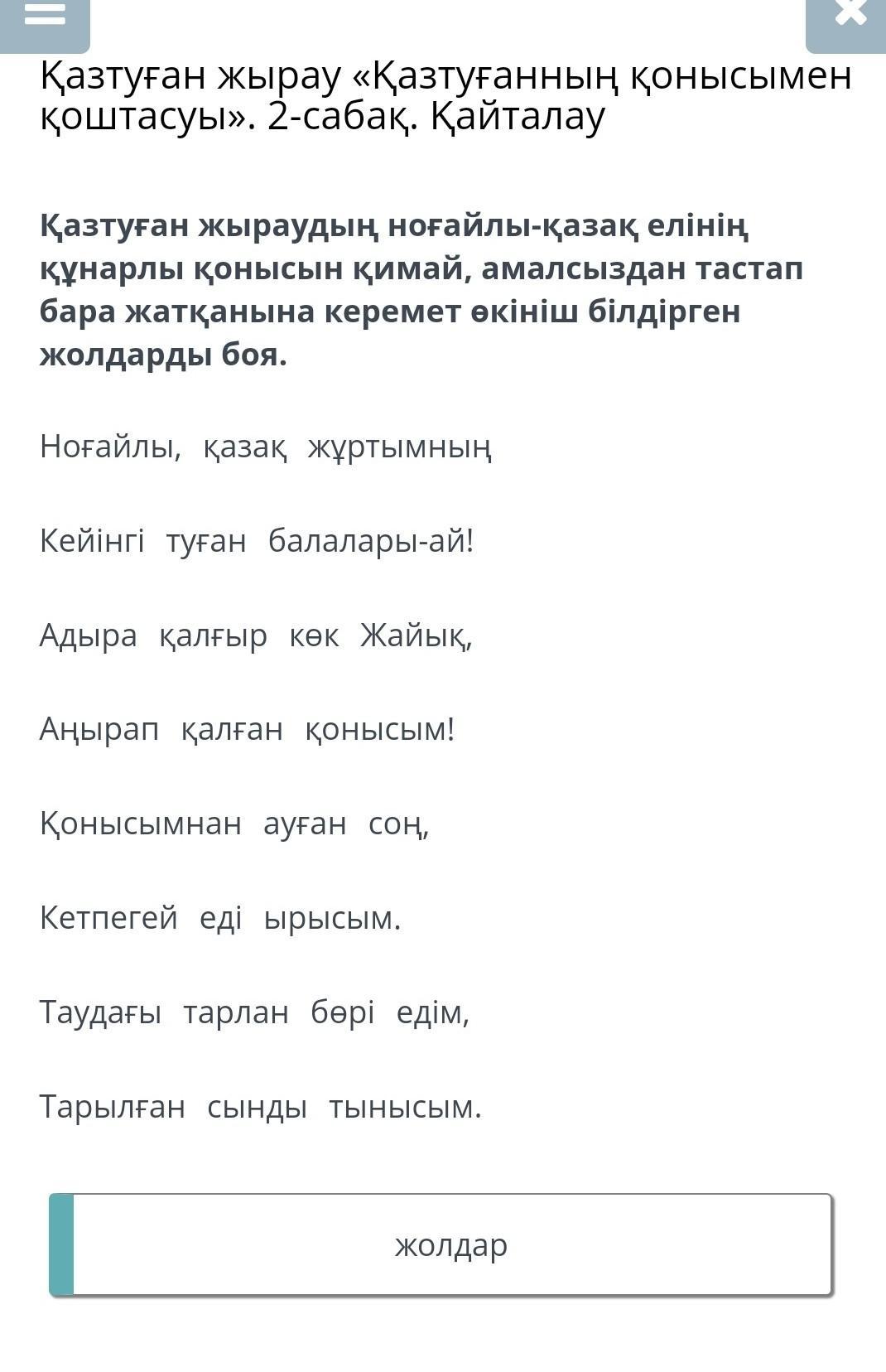 Қазтуған жырау «Қазтуғанның қонысымен қоштасуы». 2-сабақ. Қайталау