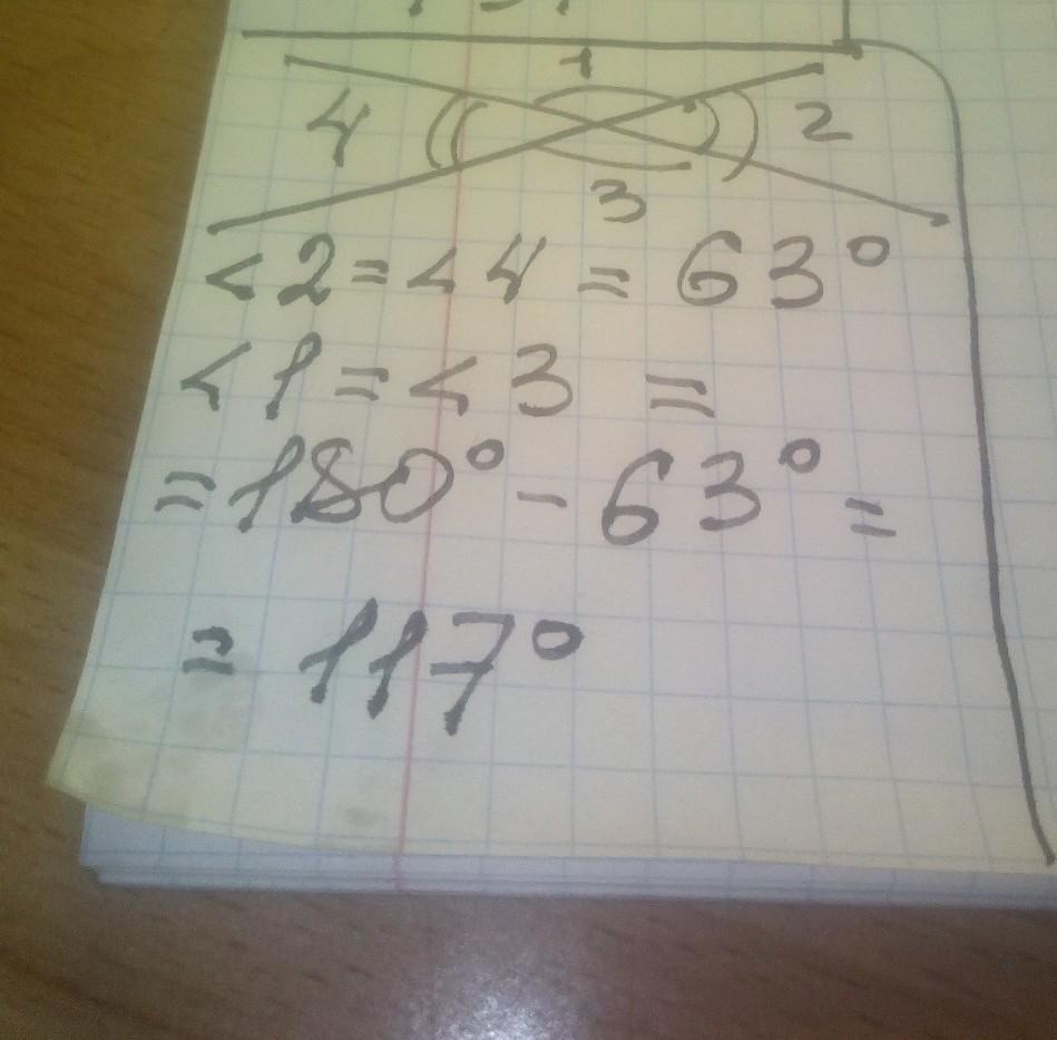 при пересечение двух прямых,оброзавались углы найдите грулусную меру всех углов?Если один из них равен 63