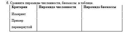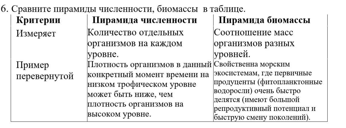 Сравните пирамиды численности, биомассы в таблице.