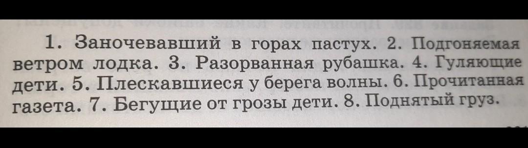 Сделайте из всех предложений, словосочетаний причастный оборот. Покажите определяемое существительное, сам причастный поворот и зависимо слово.