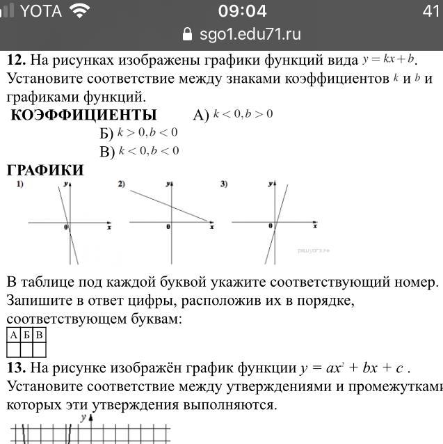 1) когда k>0, то график функции находится в первой и третьей плоскости, т.е. это рисунок 3) и наоборот, когда k<0, то график функции находится во второй и четвертой четверти, это рисунки 1) и 2)
