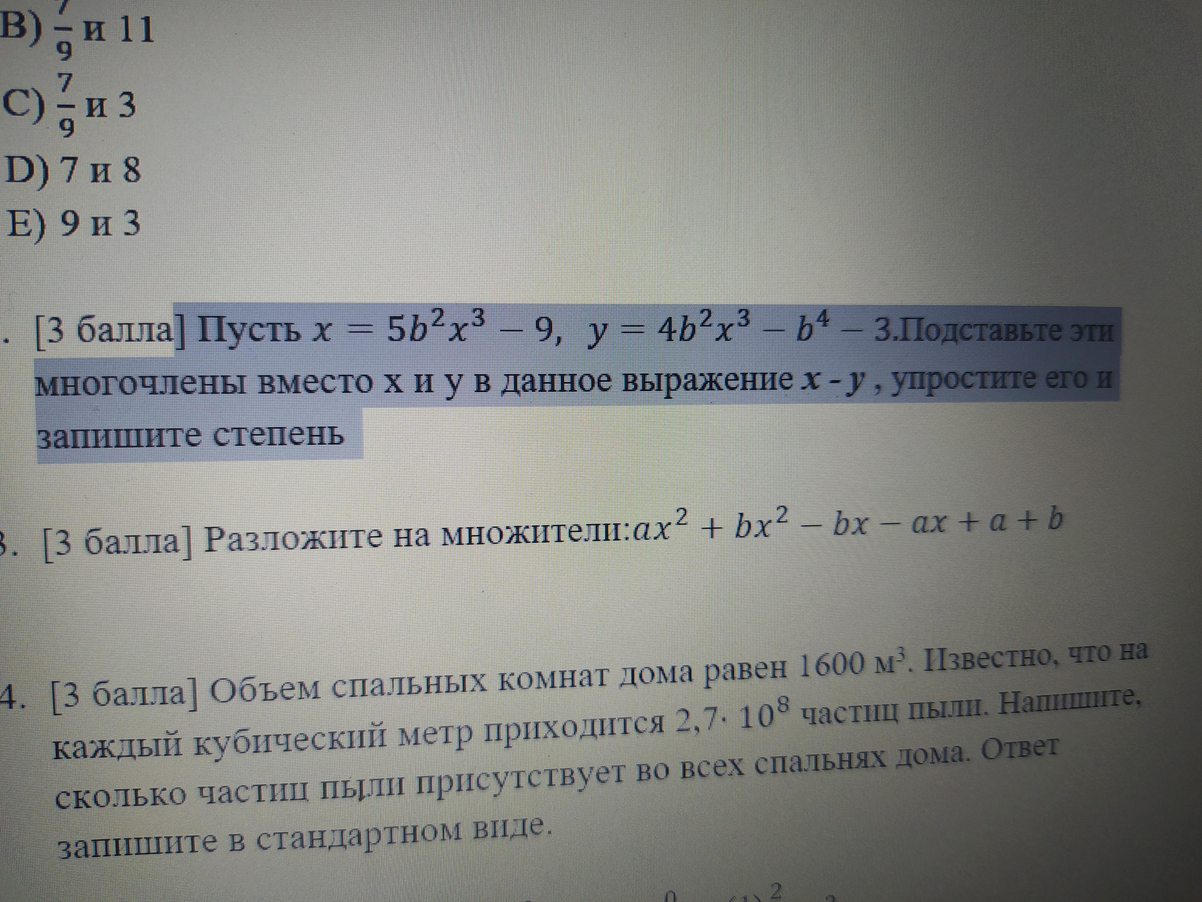 5в²х³-9-4в²х³-в4-3= 1-в4-12 (В в 4 степени)
