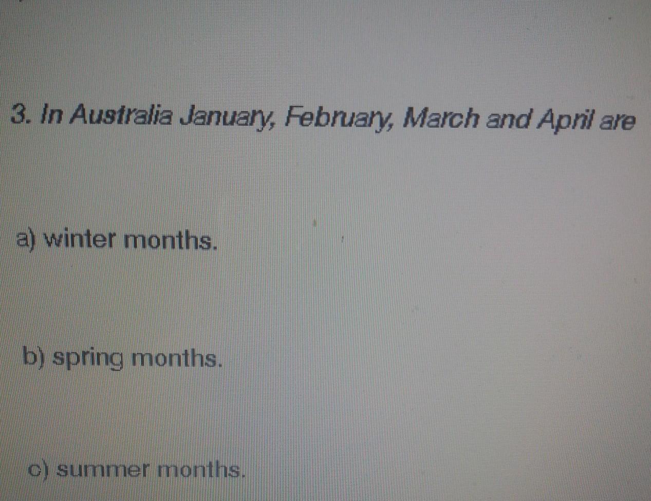 January, February, March are winter months