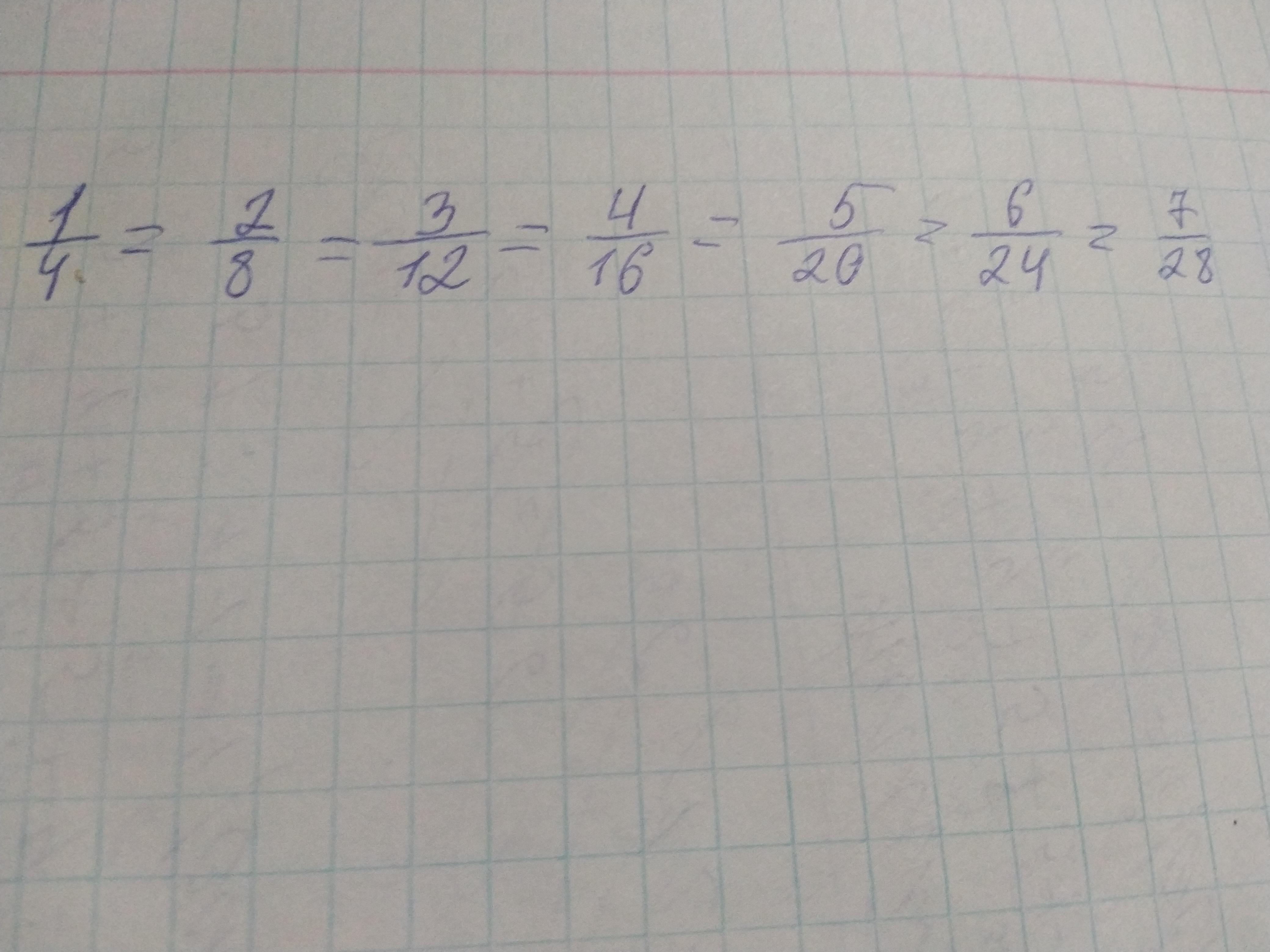 1/4 = 2/8 = 3/12 = 4/16 = 5/20 = 6/24 =7/28