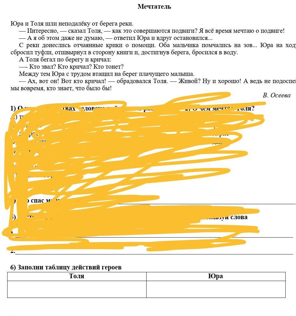 Толя: бегал, кричал, обрадовался. Юра: сбросил,отшвырнул, бросился, втащил.