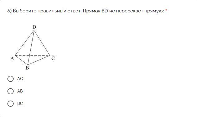 6) Выберите правильный ответ. Прямая BD не пересекает прямую: