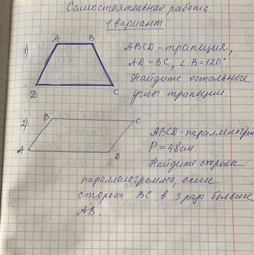 угол С=60, тк, угол В+ угол С=180. угол С =180-120=60.