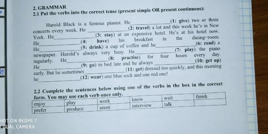 2 GRAMMAR 21 Put the verbs intu the eorrect tense.СРОЧНО!!Заранее спасибо!!!Дам 41б!!Дам 41б!!!