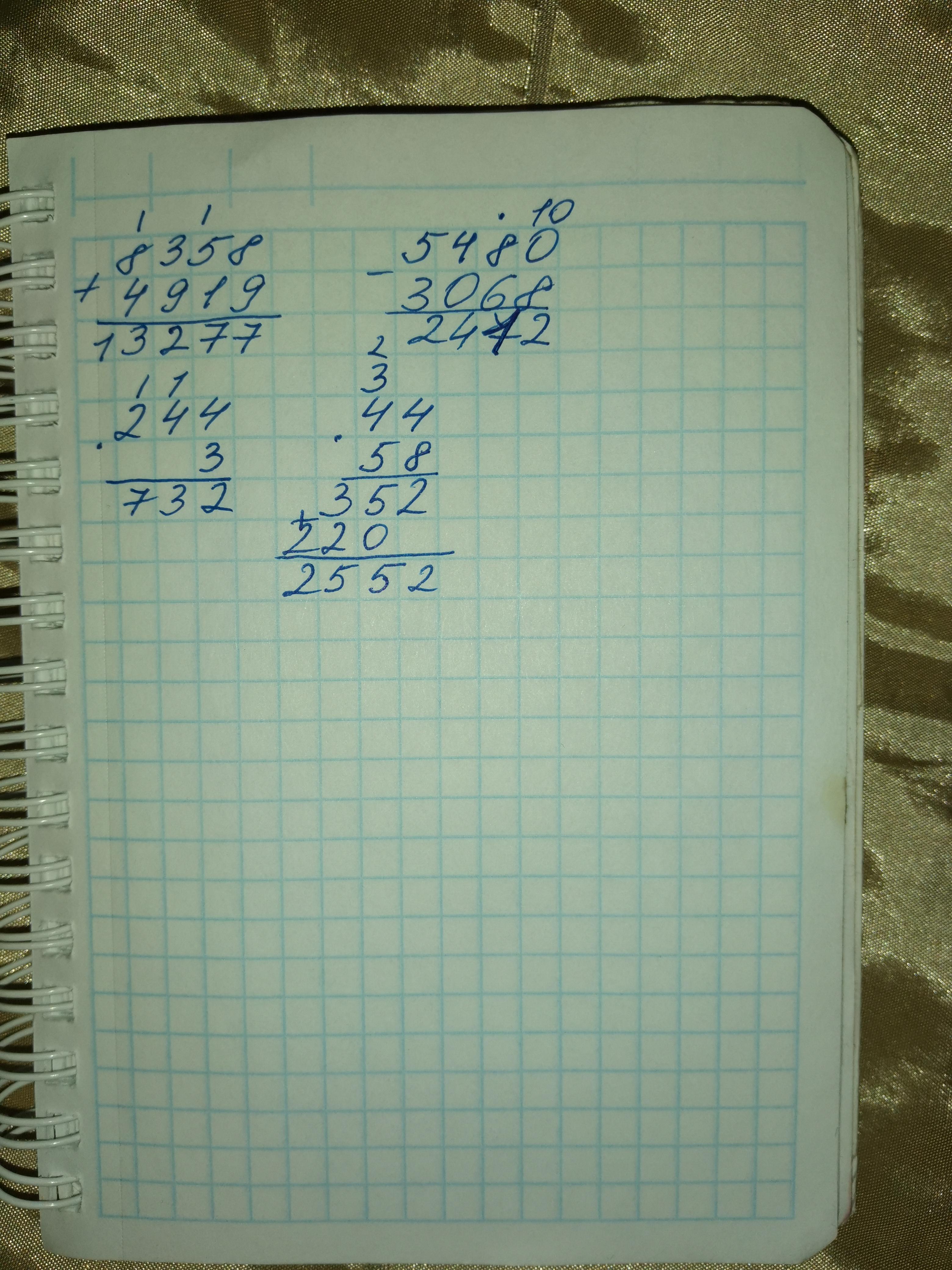 3. Вычисли столбиком. 8358+4919 5480-3068 244*3 44*58