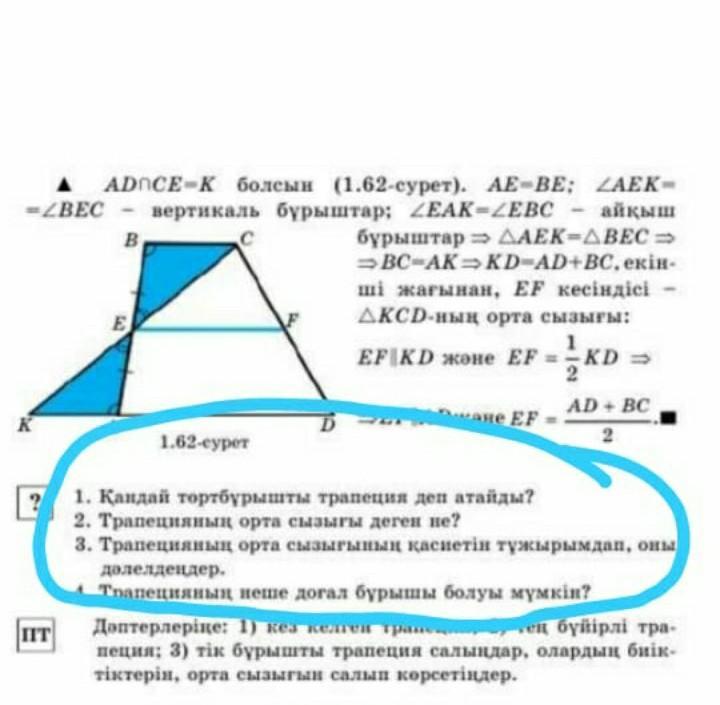 трапеция деген, еки гана кабыргасы параллель болатын(кобинесе табыны) фигура.