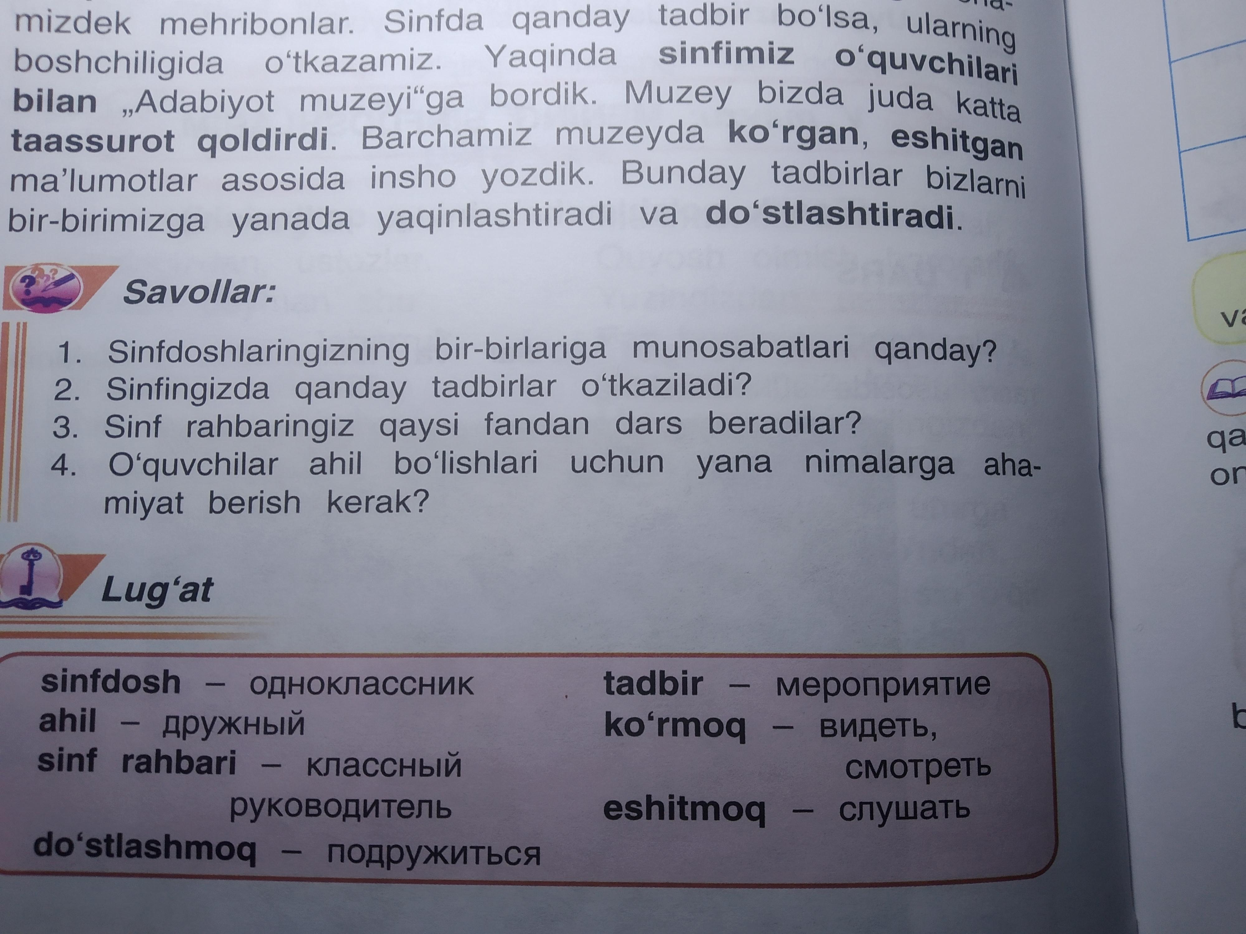 1. Sinifdoshlaringizning bir-biriga munosabatlari qanday ?