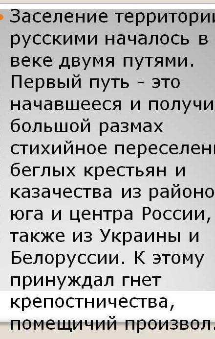 18 век происходит русское заселение региона Сибири и Дальнего Востока, появляются первые крупные промышленные предприятия <<горные заводы , винокуренные, солеваренные>>