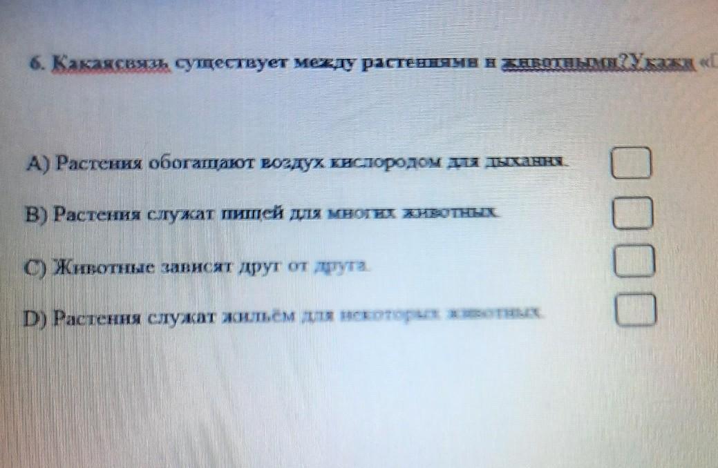 6 Какая связь существует между растениями и животнымиҮСІЯ)