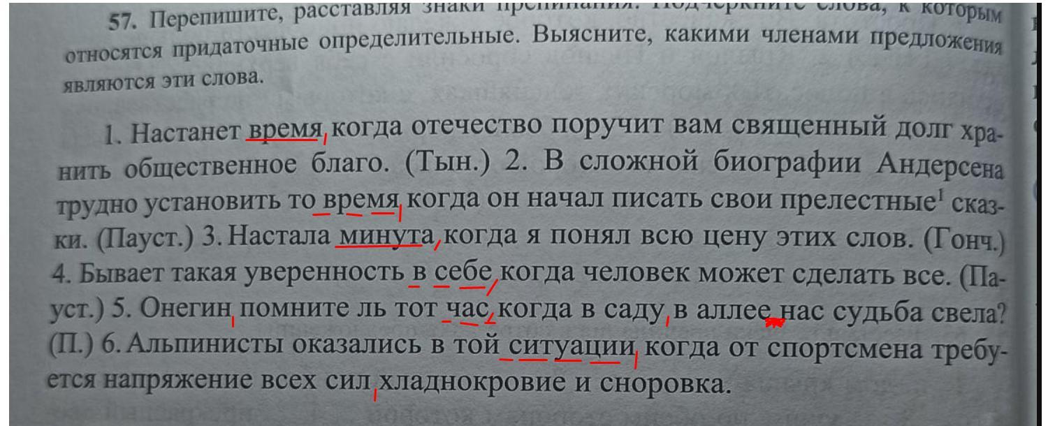 57. Перепешите расставляя знаки препинания. Подчеркните слова, к которым относятся придаточные определительные . Выясните какими членами предложения являются эти слова.